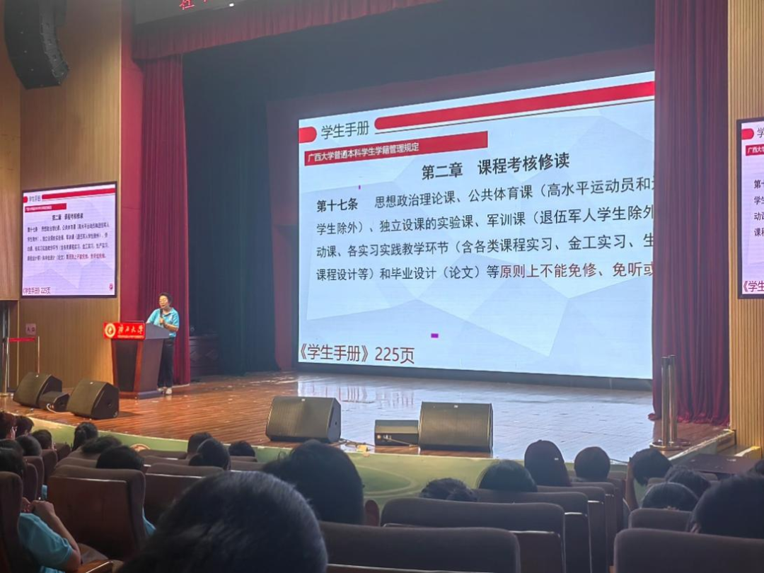 为帮助级新生了解校纪校规、树立纪律意识、规范日常行为,9月18日下午,我们在大学生活动中心小剧场举办《biwn必赢网址学生手册》学籍管理相关文件学习会。会议由学院副院长林莹主持,2025级全体本科新生参与。